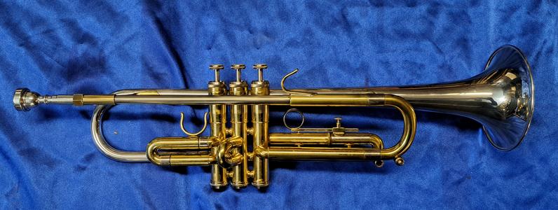 Hybrid trumpet made with a combination of Getzen valves (Getzen uses the same valves from beginner to pro series trumpets), New Getzen Eterna Classic Leadpipe and Yamaha Custom YTR-6310B Bell that is silver-plated! JGMP BRASS custom quality affordable hybrid trumpet assembled with quality proven parts. Excellent one of a kind custom trumpet combination of Getzen valves, pro Getzen Eterna Classic new leadpipe and new Yamaha Custom pro bell offer a very responsive focused tone. Use it for your main axe or as an inexpensive backup or doubler horn. Excellent value for under $1000!!