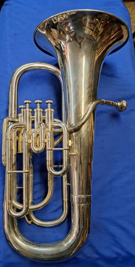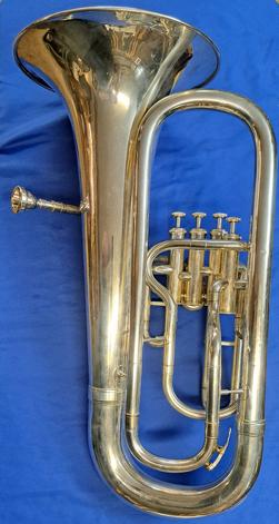 Silver-plated Willson 2704 model 4 Valve Non-Compensating Euphonium. Ready for the next school brass inventory or individual player that needs their own Euphonium. Very solid player that has a big round tone, just serviced. Comes with a nice case and a large shank mouthpiece.